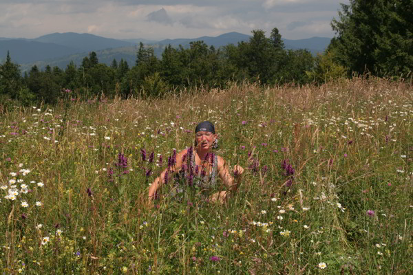 Bei Lapus suchen wir nach einem Rastplatz. In einem Tal sahen wir mehrere neu errichtete Grillhütten, die jedoch am Wochenende von den Einheimischen in Beschlag genommen werden. Wir bevorzugen lieber einen ruhigeren Platz abseits der Straße. Ein Stück weiter biegen wir in Sucin de Sus auf einen Waldweg ab und finden nicht weit von einer kleinen Sennhütte eine passende Wiese am Bach. Der Weg führt uns auf einem Spaziergang noch etwa 1,5 Kilometer weiter, vorbei an herrlich bunt blühenden Wiesen, wir rechnen jedoch stets mit einer weiteren Hütte und kehren bald um, um nicht einer Horde Hütehunde in die Quere zu kommen.